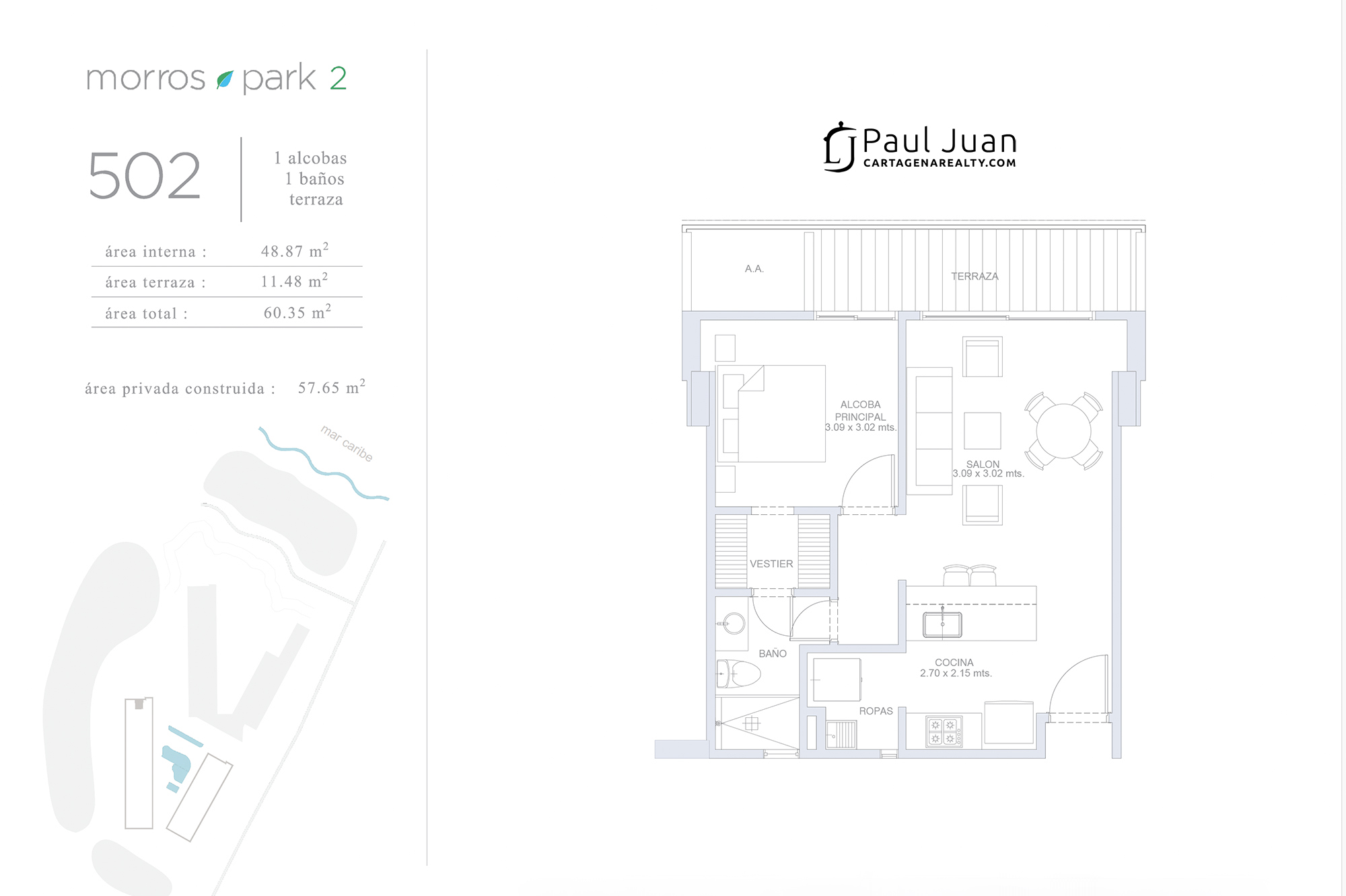 Apartments of 1 to 3 bedrooms, with areas from 581 to 1,904 Sq.Ft.